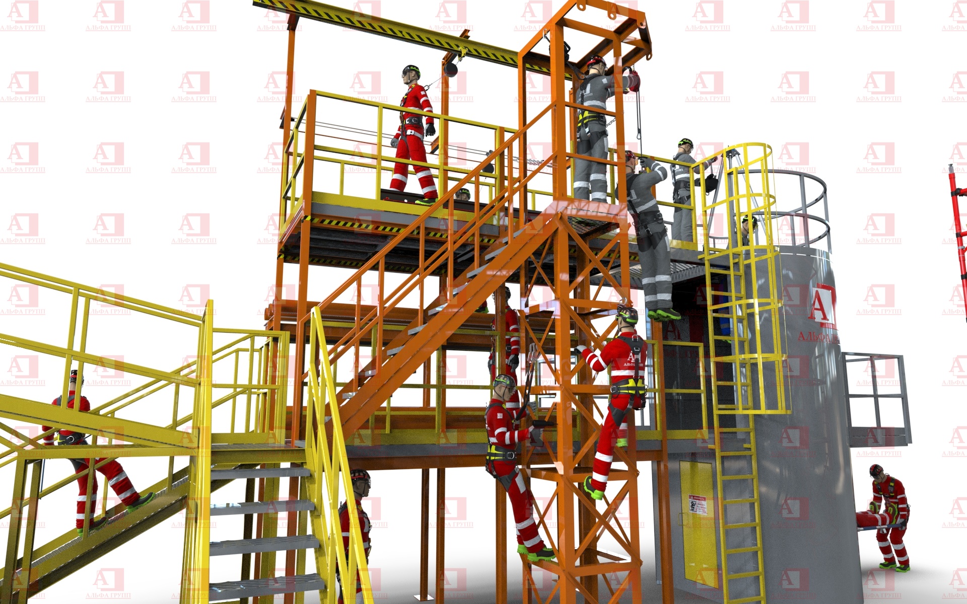 Доступ на рабочую площадку второго уровня осуществляется по стальной маршевой лестнице.